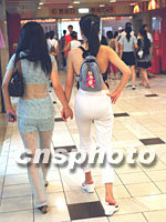 圖:大連女鐘愛火熱透視裝 2001年08月28日 18:39 ![]() 國際服裝節(jié)開幕前夕,大連街頭時裝秀已經(jīng)拉開序幕,時尚女孩以火熱的透視裝,露背裝盡現(xiàn)青春氣息。中新社記者 王瑤 攝