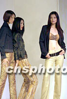十位中國(guó)著名時(shí)裝設(shè)計(jì)師八月二十二日云集上!爸袊(guó)國(guó)際服裝服飾博覽會(huì)高級(jí)成衣展”,共同演繹二○○一年最新時(shí)尚。圖為二○○○年中國(guó)最佳職業(yè)時(shí)裝模特排名第一的姜培琳(右)領(lǐng)銜主演。中新社記者 潘索菲 攝