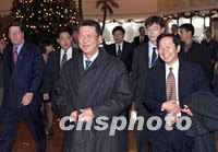 圖文:澳門特區(qū)行政長官何厚鏵抵達北京述職 2001年12月25日 17:36 ![]() 前來述職的澳門特別行政區(qū)行政長官何厚鏵,二十五日抵達北京并下榻港澳中心。國務(wù)院港澳辦公室副主任陳佐洱在港澳中心大堂迎接。中新社記者 毛建軍 攝 ![]() 前來述職的澳門特別行政區(qū)行政長官何厚鏵,二十五日抵達北京并下榻港澳中心,國務(wù)院港澳辦公室副主任陳佐洱在港澳中心大堂迎接。中新社記者 毛建軍 攝