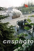 圖:消防演練與美化環(huán)境一舉兩得 2002年03月27日 10:36 ![]() 北京大興武警后勤基地消防隊,三月結(jié)合消防演練任務,派消防車一邊給大樹澆水,一邊訓練消防動作,一舉兩得。中新社圖 曹文 攝
