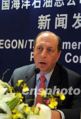 圖:中國海油與全球人壽聯(lián)手進軍中國人壽保險市場 2002年05月13日 19:12 ![]() 中國海洋石油總公司和荷蘭全球人壽保險公司十三日在上海聯(lián)合宣布,兩家公司將按照相同比例共同出資組建一家合資公司,從而在中國開展人壽保險業(yè)務(wù)。圖為全球人壽保險公司執(zhí)行董事會主席唐仕德在此次新聞發(fā)布會上。作者:湯彥俊