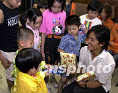 歌影紅星鄭伊健及其國際歌迷會(huì)成員27日在香港親善探訪保良局,參觀該局兒童宿舍及并與局童共同游玩。鄧慶樂 攝