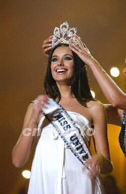 俄羅斯佳麗奪得環(huán)球小姐 中國(guó)卓靈榮獲第三(圖) 2002年05月30日 11:53 ![]() 俄羅斯佳麗贏得環(huán)球小姐桂冠 ![]() 中國(guó)佳麗卓靈贏得第三名,圖為中國(guó)小姐展示晚裝。 中新網(wǎng)北京5月30日消息:當(dāng)?shù)貢r(shí)間29日晚,在波多黎格舉行的環(huán)球小姐選美中,俄羅斯人奧克薩納·費(fèi)多羅瓦以烏黑靚麗的長(zhǎng)發(fā)和優(yōu)雅的風(fēng)度,擊敗另外74名佳麗,贏得環(huán)球小姐桂冠。 據(jù)法新社報(bào)道,奧克薩納·費(fèi)多羅瓦身穿白色禮服,面帶微笑,步入舞臺(tái),并向現(xiàn)場(chǎng)觀眾飛吻致意。 上屆環(huán)球小姐波多黎格人丹尼斯·吉諾內(nèi)斯將環(huán)球小姐桂冠交給費(fèi)多羅瓦。 巴拿馬的烏斯汀·帕塞克獲得亞軍,中國(guó)佳麗卓靈贏得第三名。 相關(guān)報(bào)道:多圖:2002年環(huán)球小姐選美進(jìn)行晚裝展示 相關(guān)報(bào)道:組圖:2002世界小姐選美進(jìn)行泳裝展示 相關(guān)報(bào)道:多圖:2002世界小姐選美賽進(jìn)行服裝展示
