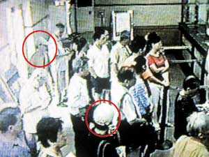 北京懸賞萬(wàn)元征集三元橋銀行劫案嫌犯線索(圖) 2002年08月04日 12:31 ![]() 兩名嫌疑人假作儲(chǔ)戶排隊(duì)觀察儲(chǔ)蓄所內(nèi)周?chē)闆r ![]() 持刀向柜臺(tái)內(nèi)喊話,另一人沖向柜臺(tái)出入口 中新網(wǎng)北京8月4日消息:7月31日上午9時(shí)35分左右,位于北京朝陽(yáng)區(qū)三元東橋的中國(guó)工商銀行三元橋南儲(chǔ)蓄所發(fā)生了一起持槍搶劫案,兩名犯罪嫌疑人搶劫未遂逃跑。 據(jù)京華時(shí)報(bào)報(bào)道,前天,記者在望京、三元橋等地的居民小區(qū)看見(jiàn)了警方張貼的協(xié)查通報(bào)。目前,根據(jù)相關(guān)資料,案件中現(xiàn)場(chǎng)兩名嫌疑人的特征已被掌握,警方已懸賞1萬(wàn)元向市民征集有價(jià)值的線索。 兩名嫌疑人特征如下: 1.嫌疑人甲,男,25歲左右,身高1.70米左右,體瘦、圓臉、膚色較黑,頭戴白色棒球帽,上穿土黃色T恤衫,下穿灰色帶花格短褲,腳穿白色長(zhǎng)襪,隨身帶一淺黃色袖珍挎包。該人隨身攜帶自制小口徑手槍一支。 2.嫌疑人乙,男,25歲左右,身高1.70米左右,留平頭,膚色較黑,頭戴白色棒球帽,上穿黑灰色T恤衫,下穿白色短褲,腳穿白色長(zhǎng)襪,隨身帶有一黑色挎包。該人持刀。