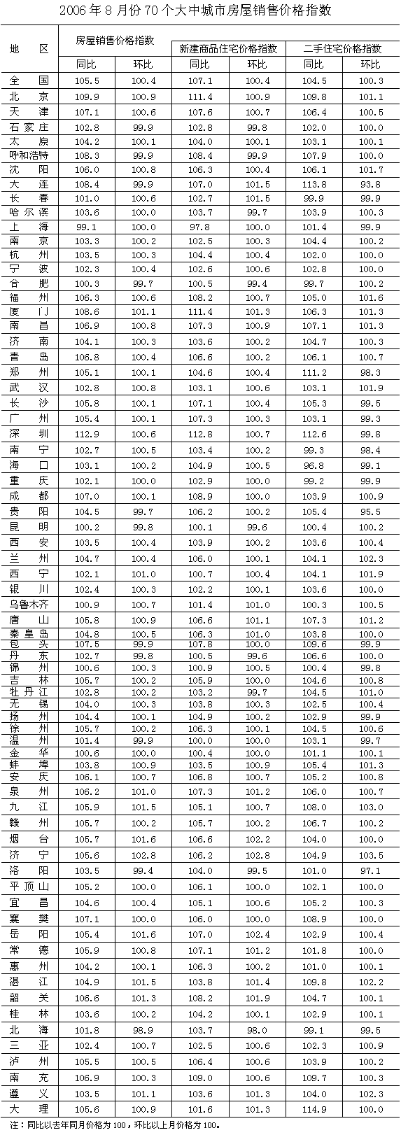 中新網(wǎng)9月13日電 據(jù)《經(jīng)濟參考報》報道,國家統(tǒng)計局日前公布,8月份,全國70個大中城市房屋銷售價格同比上漲5.5%,漲幅比上月低0.2個百分點。與去年同月相比,新建商品住宅、二手住宅銷售價格上漲幅度有所擴大,新建非住宅商品房、非住宅二手房銷售價格上漲幅度明顯回落。