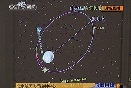 11時(shí)15分,北京航天飛行控制中心調(diào)度地面測(cè)控系統(tǒng),向沿著地月轉(zhuǎn)移軌道高速飛行的“嫦娥一號(hào)”發(fā)出指令,衛(wèi)星發(fā)動(dòng)機(jī)準(zhǔn)時(shí)點(diǎn)火,工作22分鐘后,正常關(guān)機(jī)。隨后,北京中心對(duì)各項(xiàng)測(cè)量數(shù)據(jù)的計(jì)算結(jié)果表明,衛(wèi)星順利進(jìn)入周期為12小時(shí)的橢圓環(huán)月軌道。