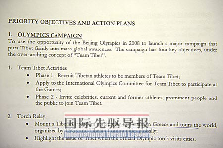 “行動(dòng)計(jì)劃”將針對(duì)北京奧運(yùn)會(huì)采取行動(dòng)列為第一點(diǎn)。文件提出該行動(dòng)有4大目標(biāo),并要在全球范圍內(nèi)招募人員組建一個(gè)名為“西藏之隊(duì)”(Team Tibet)的隊(duì)伍,專門(mén)針對(duì)奧運(yùn)會(huì)采取行動(dòng),目標(biāo)人員包括“知名人士、現(xiàn)役和退役運(yùn)動(dòng)員、杰出人士和民眾”,F(xiàn)在看來(lái),連搶金晶火炬的洛桑·甘丹這類暴徒也是“西藏之隊(duì)”網(wǎng)羅的對(duì)象。