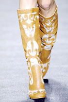今年設(shè)計(jì)師們強(qiáng)調(diào)蝴蝶的高雅、古典和夢(mèng)幻色彩。根據(jù)配飾流行情報(bào)透露,本季蝴蝶配飾和鞋包一定大熱。不妨參考一下梵克雅寶今年春夏Envol珠寶系列,精巧古典的單蝶戒指和三蝶手鐲。而另一個(gè)偏愛(ài)蝴蝶的設(shè)計(jì)師安娜·蘇本季也推出可愛(ài)的冰藍(lán)色和淺咖啡色蝴蝶貼片長(zhǎng)靴和手袋。從中我們可以明白一個(gè)道理:本季的蝴蝶要走上流路線,高雅而富有想像力,是公主般的優(yōu)雅蝴蝶。