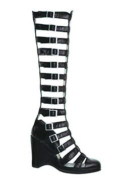 在今季的靴型涼鞋中,黑與白的配搭組成了另一條個性分明的戰(zhàn)線,一向品位出眾的國際品牌Chanel便是個中極品,Chanel今季推出的一款扣帶鏤空楔型靴,密密麻麻的綁帶一直蔓延到膝蓋處,金屬的扣夾加上復(fù)古的圓頭坡跟,帶有一絲浪漫中性的軍旅風(fēng)格。其另一款則沿用了干練的短靴設(shè)計風(fēng)格,在腳腕處柔軟的白色皮質(zhì)上方,纏以簡練的黑色線條,黑與白的完美配搭帶一點后現(xiàn)代的前衛(wèi)感覺。