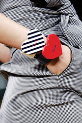 Givenchy將蕾絲花邊做成左右兩個(gè)相對的愛心放在胸前或許只是想表明,愛心也很脆弱,需要呵護(hù)需要溝通。Luella則頑皮地將愛心做成兩個(gè)紅色和條紋的手鐲,打上自己的logo,這下可不怕冒名頂替的了,專屬于Luella的愛心只有一個(gè)。