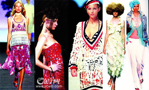 圖5:特別的鏤空編織內衣與輕薄的鏤空針織外套搭配,令MichikoKoshino的模特倍顯飄逸。