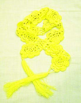 由花朵圖案拼接而成的薄圍巾,裝飾效果很強,配裙裝或褲裝都不錯。