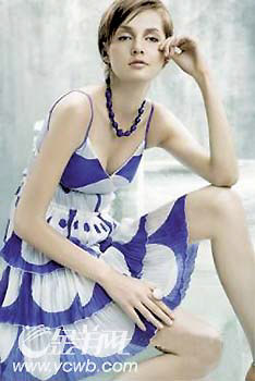 2006年的連衣裙也被地中海的風(fēng)暴所侵襲,在服飾顏色上,直逼自然的色彩成為流行重點(diǎn)。在常見(jiàn)的“地中海風(fēng)格”中,藍(lán)與白是主打色彩,藍(lán)色代表海洋,白色代表純潔的日光。