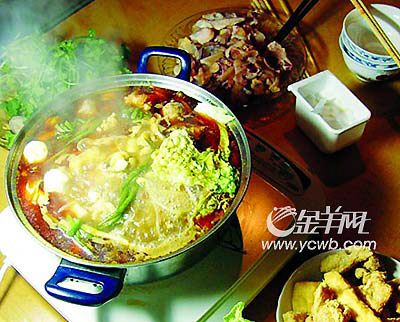 火鍋:雖說夏天熱氣大,不適宜多吃火鍋,但偶爾幾次還是允許的。建議點(diǎn)酸湯底或番茄湯底的火鍋,這樣可減少上火的可能性。與燒烤一樣,火鍋的好處也在于原料豐富、自得其樂,想象一下,與一大幫球友坐在一起,一邊打邊爐,一邊為心中的球隊(duì)加油吶喊,豈不美哉!