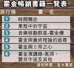 “現代愛因斯坦”霍金抵達香港,旋即帶起全城熱爆,也成為街頭巷尾的熱門話題。而霍金的名著《時間簡史》繁體版及英文版竟然全面斷市,價值數百元的《霍金漫游宇宙》影碟銷量亦上升三成.......[全文]