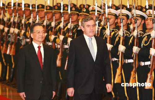 溫家寶主持儀式歡迎英國(guó)首相布朗