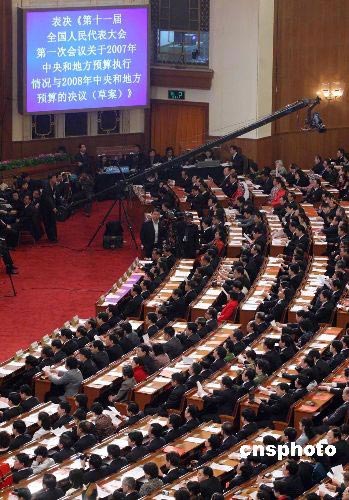 3月18日上午九時,十一屆全國人大一次會議在北京人民大會堂舉行閉幕會,人大代表按表決器,表決各項草案。中新社發(fā) 張宇 攝
