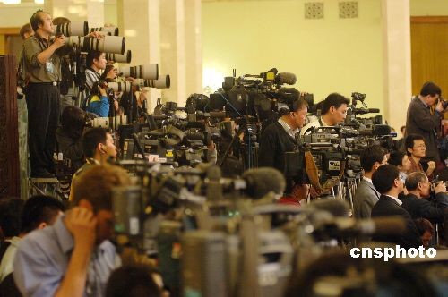 3月18日上午,十一屆全國人大一次會議在北京人民大會堂閉幕,國務(wù)院總理溫家寶于會后率李克強(qiáng)、回良玉、張德江、王岐山四位副總理會見中外記者。中外媒體云集總理記者會。中新社發(fā) 王東明 攝