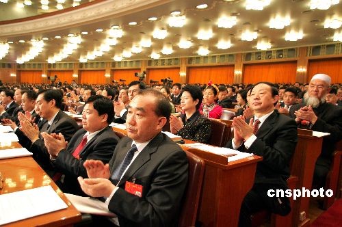 3月10日上午,十一屆全國人大一次會議在北京人民大會堂舉行第三次全體會議,全國人大代表聽取最高人民法院院長肖揚作最高人民法院工作報告,最高人民檢察院檢察長賈春旺作最高人民檢察院工作報告。出席全國政協(xié)十一屆一次會議的政協(xié)委員列席。中新社發(fā) 任晨鳴 攝