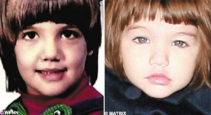 凱蒂14日在電視節(jié)目宣傳新片時(shí),特意拿出她小時(shí)候的照片(左)和女兒(右)對(duì)照,結(jié)果相似度超過(guò)九成。