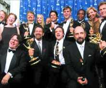 第52屆電視艾美獎(jiǎng)揭曉 “白宮”壓倒“黑道” 2000年9月12日 14:18 ![]() 破了紀(jì)錄的《白宮群英》劇組人員在艾美獎(jiǎng)?lì)C獎(jiǎng)禮上歡呼雀躍 中新網(wǎng)洛杉磯9月12日消息:第52屆電視艾美獎(jiǎng)于洛杉磯時(shí)間9月10日揭曉,《白宮群英》(The West Wing),以9項(xiàng)大獎(jiǎng)?chuàng)魯×送@18項(xiàng)提名的《人在江湖》(The Sopranos)。 《白宮群英》是以美國總統(tǒng)與其精英幕僚為主角,描寫這些人置身于權(quán)力中心的白宮,如何運(yùn)用權(quán)力與決策,應(yīng)付新聞媒體與復(fù)雜人際關(guān)系的精彩過程。 《白宮群英》還打破了之前《仁心仁術(shù)》8項(xiàng)獎(jiǎng)座的紀(jì)錄,以最佳戲劇類電視影集、最佳戲劇類男女配角、編劇、導(dǎo)演等9項(xiàng)大獎(jiǎng),再次刷新艾美獎(jiǎng)得獎(jiǎng)紀(jì)錄。 據(jù)此間媒體消息,原本大家看好的HBO電視劇《人在江湖》,在十八項(xiàng)提名中,只拿下了最佳戲劇類男主角一個(gè)大獎(jiǎng),“白宮”終于蠃得勝利,“黑道”不再橫行霸道!(完) 相關(guān)報(bào)道:艾美獎(jiǎng)?lì)C獎(jiǎng)前夕美黑人演員爭取公平獲獎(jiǎng)機(jī)會 |