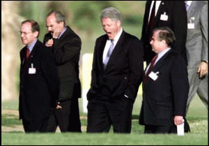 圖文:中東緊急峰會(huì)首日無進(jìn)展 2000年10月17日 07:19 克林頓希望以巴雙方能化解歧見,停止沖突。 克林頓為中東和平多年來盡力斡旋,在峰會(huì)休息時(shí)間,也出現(xiàn)了這個(gè)打呵久的倦態(tài)。 中新網(wǎng)北京10月17日消息:綜合通訊社報(bào)道,旨在結(jié)束巴以流血沖突的中東問題多邊首腦會(huì)議﹐星期一在埃及的紅海渡假勝地沙姆沙伊赫開幕﹐但巴勒斯坦文化新聞部長(zhǎng)拉博對(duì)記者說﹐會(huì)議至今沒有取得進(jìn)展。 綜合外電報(bào)道,聯(lián)合國(guó)秘書長(zhǎng)安南﹑巴勒斯坦民族權(quán)力機(jī)構(gòu)主席阿拉法特﹑以色列總理巴拉克﹑美國(guó)總統(tǒng)克林頓﹑約旦國(guó)王阿卜杜拉和歐盟負(fù)責(zé)外交和安全政策的高級(jí)代表索拉納出席了會(huì)議。 拉博表示﹐巴勒斯坦要求以色列不讓武裝的猶太定居者留在巴勒斯坦管治地區(qū)之內(nèi)。他還表示﹐以方提出了法塔赫組織持有武器的問題﹐以及要求重新逮捕巴勒斯坦警方最近釋放的哈馬斯分子的問題。 他指出﹕“他們(以色列)在這次峰會(huì)上的全部愿望﹐就是討論這兩件事。但這并不是我們來此的目的。” 以色列總理巴拉克的安全首腦亞托姆說﹐這次峰會(huì)“情況復(fù)雜﹐充滿困難和爭(zhēng)執(zhí)”。但他又堅(jiān)稱各方“都有解決問題的真誠(chéng)愿望”。但以色列代表團(tuán)的另一名成員對(duì)此不以為然﹐指責(zé)巴勒斯坦人造成僵局。 埃及總統(tǒng)穆巴拉克在開幕式上發(fā)表講話﹐呼吁結(jié)束在巴勒斯坦領(lǐng)土上的“半戰(zhàn)爭(zhēng)狀態(tài)!币?yàn)檫@種狀態(tài)已造成大量人員傷亡的悲劇。他呼吁“挽救和平進(jìn)程尚余的誠(chéng)信”。 他指責(zé)以色列說﹕“巴勒斯坦人民過去兩周所受到的侵犯﹐驅(qū)使我召集這次會(huì)議。” 美國(guó)總統(tǒng)克林在峰會(huì)開幕辭中宣稱﹕“我們不能承受失敗。和平進(jìn)程的未來和中東地區(qū)的穩(wěn)定處于危急之中! 克林頓呼吁設(shè)立調(diào)查團(tuán)去調(diào)查以巴雙方這次多年來最嚴(yán)重沖突的原因﹐避免事件重演。 他說﹕“我們希望談判能再次展開! 但巴拉克在會(huì)上強(qiáng)調(diào)﹐“以色列不接受任何一種國(guó)際調(diào)查委員會(huì)﹐只會(huì)接受一個(gè)以美國(guó)為首的調(diào)查小組”。 作為中東和平進(jìn)程聯(lián)合發(fā)起者的俄羅斯﹐沒有出席中東峰會(huì)。外長(zhǎng)伊萬諾夫在莫斯科說﹕“我們沒有接到邀請(qǐng)!钡麑(duì)此反應(yīng)低調(diào)﹐稱峰會(huì)成果比俄羅斯是否參與更重要。 上午的會(huì)談歷時(shí)約三十分鐘。克林頓和穆巴拉克分別致開幕辭之后﹐會(huì)議小休。 白宮發(fā)言人克勞利說﹐即使以巴雙方無法達(dá)成協(xié)議﹐克林頓也不打算再延長(zhǎng)停留期。他說﹐克林頓計(jì)劃于午夜離開﹐但可能會(huì)推遲十二小時(shí)。 雖然總統(tǒng)任期只剩下三個(gè)月左右﹐但克林頓仍然希望能夠促成和議。不過﹐對(duì)這次首腦會(huì)﹐最樂觀的期望亦只是一項(xiàng);饏f(xié)議和一個(gè)雙方重開談判的日期。 克林頓說﹕“我們不應(yīng)因?yàn)檫^去幾個(gè)星期發(fā)生的事而完全放棄一切! 阿拉法特﹑巴拉克和克林頓在首腦會(huì)召開前都分別與穆巴拉克會(huì)晤過。 一名以色列高官說﹐巴拉克對(duì)穆巴拉克說﹐除非阿拉法特重新逮捕近日被巴勒斯坦釋放的大批激進(jìn)分子﹐以及命令保安部隊(duì)停止開槍和參與街頭騷亂﹐否則他無法撤走以色列軍隊(duì)或重開巴勒斯坦地區(qū)! 巴勒斯坦議員兼政治分析員阿姆魯說﹕“我不認(rèn)為這次首腦會(huì)可以取得任何突破。即使有任何的成功﹐亦將是極之微小的﹐而且不保證可以使到緊張局勢(shì)結(jié)束。” |
