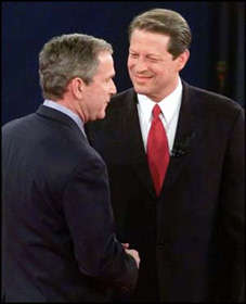 圖文:戈?duì)柤安际驳谌嗠娨曓q論開(kāi)始 2000年10月18日 10:02 ![]() 戈?duì)柵c小布什禮節(jié)性握手 中新網(wǎng)華盛頓10月18日消息:距離美國(guó)總統(tǒng)大選頭偏只剩下3星期。民主和共和兩黨候選人戈?duì)柤皢讨尾际玻诒本⿻r(shí)間今早9時(shí)展開(kāi)第三輪電視辯論。這也是選舉前最后一次辯論,盡力爭(zhēng)取仍未作出決定的選民支持。 電視辯論在華盛頓大學(xué)舉行,歷時(shí)90分鐘。在開(kāi)始辯論前,主持人宣布為剛在空難中喪生的密蘇里州州長(zhǎng)卡納翰默哀。兩人將會(huì)在今天辯論中,集中討論外交問(wèn)題。(圖文均據(jù)外電) 相關(guān)報(bào)道:戈?duì)柡托〔际步裉爝M(jìn)行最后一場(chǎng)電視辯論 相關(guān)報(bào)道:調(diào)查顯示小布什第二輪電視辯論表現(xiàn)佳 相關(guān)報(bào)道:民調(diào)顯示戈?duì)、布什首次電視辯論未見(jiàn)明顯輸贏 |