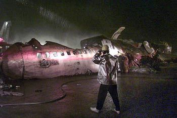 圖文:新加坡航空公司客機(jī)墜毀臺灣 65人死亡 2000年11月1日 07:04 ![]() 圖為失事飛機(jī)現(xiàn)場。 ![]() 救援人員正在搶救傷員。 ![]() 消防車。 ![]() 失事飛機(jī)殘骸。 中新網(wǎng)臺北11月1日消息:31日晚11時18分,新加坡航空公司一架由臺灣桃園中正機(jī)場飛往洛杉磯的SQ006班機(jī)在起飛時,可能因大風(fēng)天氣造成起飛失敗,機(jī)頭墜地爆炸,造成65人死亡,30人目前仍生死不明,另有84人驚險生還。 據(jù)臺灣當(dāng)?shù)孛襟w消息,機(jī)上共有179人,包括159名乘客及20名機(jī)組員,目前臺灣桃園機(jī)場方面正在全力搶救傷員。據(jù)臺灣民航“局長”張國政表示,目前已有65人死亡,68人因傷送往醫(yī)院,16人平安,但尚有30人在機(jī)艙內(nèi)尚未尋獲,生死不明。 新加坡航空臺灣分公司行政部經(jīng)理鄭政憲1日凌晨3時說,根據(jù)這架失事的飛機(jī)機(jī)長向總公司報(bào)告,飛機(jī)起飛時,撞到不明物體。但是否就是肇事原因,鄭政憲沒有做任何解釋,只把新航總公司提供的英文新聞稿,翻譯給在場的記者,并表示清晨5時會有進(jìn)一步的消息。 鄭政憲表示,已知有156名旅客,其中臺籍旅客81人。鄭政憲也證實(shí),這起飛行事故,是新加坡航空公司成立以來首次墜機(jī)事件。 外界懷疑事故可能與天氣狀況不佳有關(guān),但臺灣民航方面表示,確切失事原因還須進(jìn)一步調(diào)查,目前“行政院”航空器飛航安全委員會已指派有關(guān)官員前往了解。 新航班機(jī)31日深夜發(fā)生墜機(jī)意外,臺灣軍方已經(jīng)接到命令,隨時應(yīng)救援單位需要提供協(xié)助,希望把傷亡情況降到最低。 臺灣“消防署”重大災(zāi)害報(bào)告單指出,新航SQ006、747-400機(jī)型班機(jī),機(jī)上戴有159名乘客,機(jī)組員20名,于31日晚間11時18分由桃園中正機(jī)場左5跑道起飛時,被強(qiáng)風(fēng)吹離跑道,翻覆爆炸起火燃燒,飛機(jī)全毀,現(xiàn)場有11名旅客逃離現(xiàn)場。 新航SQ006班機(jī)起飛失敗后,機(jī)頭著地爆炸,機(jī)身斷成三節(jié),由于機(jī)頭受爆炸而溫度過高,致使消防、救災(zāi)人員無法靠近,只能從機(jī)尾先救出約50人。 由于中度臺風(fēng)象神來襲,桃園中正機(jī)場有多家航空公司的國際線暫;蜓诱`,但新加坡航空公司31日晚間SQ006班機(jī)仍維持正常班次起飛,不料在起飛時,疑因錯風(fēng)在降落時,撞上停放在停機(jī)坪另一架華航飛機(jī),造成新航飛機(jī)爆炸起火,由于火勢熊熊,一度使救護(hù)車無法靠近。 經(jīng)附近消防單位立即派出大批消防車及人員前往救援,在28日凌晨零時左右將火勢控制,目前救護(hù)人員正全力搶救機(jī)上179名乘客及機(jī)組員。 |