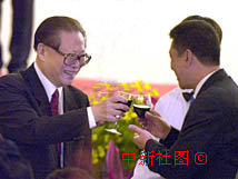 江澤民與何厚鏵舉杯祝賀 2000年12月19日 20:26 ![]() 國家主席江澤民十九日出席澳門特別行政區(qū)成立一周年慶祝晚宴,并與行政長(zhǎng)官何厚鏵舉杯祝賀。中新社傳真 宗金柱攝