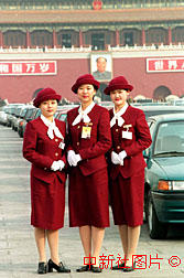 人大政協(xié)會(huì)議服務(wù)員在天安門廣場留影 2000年3月6日 08:52 ![]()