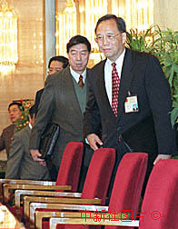 國(guó)家發(fā)展計(jì)劃委員會(huì)主任曾培炎等步入九屆全國(guó)人大三次會(huì)議新聞發(fā)布會(huì)場(chǎng),就九九年經(jīng)濟(jì)形勢(shì)和西部大開(kāi)發(fā)等問(wèn)題回答中外記者的提問(wèn)。作者:陳勇