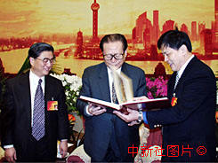 上海把《浦東開發(fā)開放十年、江總書記十下浦東》影集贈送江澤民主席 2000年3月8日 08:34 ![]()