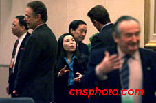 鄧亞萍與國(guó)際奧委會(huì)評(píng)估團(tuán)成員交談 2001年2月23日 22:09 ![]()