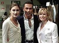 圖文:布什侄女上T臺 米蘭時裝展成亮點 2001年3月1日 16:39 勞倫(左)、設(shè)計師馬修羅和她的母親(路透社) 中新網(wǎng)米蘭3月1日消息:米蘭時裝周進行到星期三時,人們發(fā)現(xiàn)了一位T臺新秀——勞倫·布什(Lauren Bush)。16歲的她可是美國總統(tǒng)小布什的侄女哦。 微笑中透出一點點緊張,勞倫在蓋依·馬修羅(Gai Mattiolo)的2001/2002秋冬時裝專場上展示了略有些性感的外衣。馬修羅是一位以設(shè)計性感晚禮服而知名的羅馬設(shè)計師。 有媒體認為,勞倫在臺上略顯稚嫩,還缺乏自如的專業(yè)風(fēng)范。 勞倫是美國總統(tǒng)布什的兄弟尼爾的女兒,而且已經(jīng)是一位攝影模特兒。 “我找她來為我的設(shè)計作展示,因為我覺得這個年輕姑娘有一種青春的活力,”馬修羅在勞倫上臺之前對媒體記者說。 勞倫的緊張情緒在這場時裝展進入尾聲時再也看不到了,馬修羅出來向觀眾們致意,旁邊伴隨著勞倫。她笑得很燦爛。而她的媽媽,則一直在為她鼓掌。 |