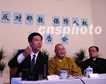 圖文:中國反邪教協(xié)會(huì)代表團(tuán)訪法 2001年3月29日 10:30 ![]() 圖為:圖為司馬南在作報(bào)告 中新社傳真 蔚中攝 中國反邪教協(xié)會(huì)代表團(tuán)三月二十四日下午在巴黎作“反對(duì)邪教保障人權(quán)”專題報(bào)告會(huì),揭露“法輪功”反人權(quán)、反社會(huì)、反科學(xué)的邪惡本質(zhì),受到中國旅法留學(xué)生的歡迎。 中國反邪教協(xié)會(huì)代表團(tuán)由中國天主教愛國會(huì)主席、中國反邪教協(xié)會(huì)副理事長(zhǎng)傅鐵山主教,中國佛教協(xié)會(huì)副會(huì)長(zhǎng)、中國反邪教協(xié)會(huì)副理事長(zhǎng)圣輝法師,中國反邪教代表團(tuán)團(tuán)長(zhǎng)、中國科技館館長(zhǎng)王渝生教授和中國反邪教協(xié)會(huì)理事、中國科普作家協(xié)會(huì)副理事長(zhǎng)司馬南等組成。 |