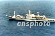 連日在中國(guó)出事海域搜救我方失蹤飛行員王偉的打撈船。中新社圖