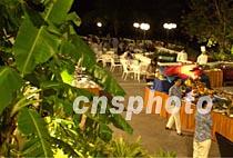 距離美國(guó)軍用偵察機(jī)撞毀中國(guó)戰(zhàn)機(jī)海域很近的海南省三亞市,度假勝地亞龍灣五星級(jí)凱萊酒店連日客滿,月夜露天餐廳服務(wù)照常。中新社記者 賈國(guó)榮 攝