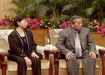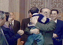 圖文:江澤民等中國(guó)領(lǐng)導(dǎo)人會(huì)見(jiàn)王偉親屬 2001年4月20日 19:15 ![]() 江澤民把王偉六歲的兒子摟在懷里 ![]() 王偉的父親王明、母親王月琴 ![]() 王偉的妻子阮國(guó)琴 中新網(wǎng)北京4月20日消息:中共中央總書(shū)記、國(guó)家主席、中央軍委主席江澤民,今天在北京人民大會(huì)堂會(huì)見(jiàn)了“?招l(wèi)士”王偉同志親屬及其生前所在部隊(duì)代表。 中共中央政治局常委、全國(guó)人大常委會(huì)委員長(zhǎng)李鵬,中共中央政治局常委、國(guó)務(wù)院總理朱镕基,中共中央政治局常委、中央書(shū)記處書(shū)記尉健行參加了會(huì)見(jiàn)。 中共中央政治局委員、中央書(shū)記處書(shū)記丁關(guān)根,中共中央政治局委員、中央軍委副主席張萬(wàn)年,中共中央政治局委員、中央軍委副主席遲浩田,中共中央政治局委員、國(guó)務(wù)院副總理錢(qián)其琛,中共中央政治局候補(bǔ)委員、中央書(shū)記處書(shū)記曾慶紅以及中央軍委委員于永波、王克、王瑞林、郭伯雄、徐才厚也參加了會(huì)見(jiàn)。 上午9時(shí)30分,江澤民等領(lǐng)導(dǎo)同志來(lái)到人民大會(huì)堂東大廳。王偉同志的妻子阮國(guó)琴、父親王明、母親王月琴、姐姐王琳,眼含熱淚迎上前去,緊緊握住江澤民等領(lǐng)導(dǎo)同志的手。江主席從阮國(guó)琴手中抱起王偉6歲的兒子,摟在懷里,孩子緊緊貼著江爺爺?shù)哪。江主席?dòng)情地說(shuō):“我在國(guó)外訪(fǎng)問(wèn)期間,每天都掛記著王偉同志的搜救情況,也很惦念你們?nèi)摇N易蛱煜挛鐒偝鲈L(fǎng)回來(lái),今天與在京的政治局常委、幾位政治局委員和軍委的同志一起來(lái)看望你們!蓖鮽ネ镜挠H屬和戰(zhàn)友、生前所在部隊(duì)代表趙宇,衷心感謝黨中央、國(guó)務(wù)院、中央軍委領(lǐng)導(dǎo)對(duì)他們的關(guān)心。 江澤民指出,王偉同志為了保衛(wèi)國(guó)家主權(quán)和安全,獻(xiàn)出了年輕的生命。他的犧牲是很英勇的,他平時(shí)的事跡也很突出,值得全軍官兵學(xué)習(xí)。中央軍委授予王偉同志“?招l(wèi)士”榮譽(yù)稱(chēng)號(hào),這是祖國(guó)和人民對(duì)王偉同志的最高褒獎(jiǎng),是全軍指戰(zhàn)員的光榮,也是你們?nèi)业墓鈽s。王偉同志的精神是永存的,人民會(huì)永遠(yuǎn)記住他。江澤民對(duì)王偉父母說(shuō),我要感謝你們?yōu)辄h和國(guó)家培養(yǎng)了一個(gè)好兒子。希望你們?nèi)依^承烈士遺志,養(yǎng)育好烈士的后代。 江澤民說(shuō),中國(guó)有12多億人口,我們對(duì)每一個(gè)人的生命都非常珍惜。人的生命只有一次,我非常理解你們失去親人的悲痛。撞機(jī)事件發(fā)生后,黨中央、國(guó)務(wù)院、中央軍委對(duì)王偉同志的安危極為關(guān)切,要求不惜一切代價(jià),動(dòng)用一切手段組織搜救。在十多天的時(shí)間里,全國(guó)各族人民都牽掛著王偉同志。這充分說(shuō)明,中華民族是有強(qiáng)大凝聚力的。 江澤民指出,這次撞機(jī)事件的發(fā)生,根本原因是美國(guó)多年來(lái)派飛機(jī)在我國(guó)近?沼?qū)嵤┪:ξ覈?guó)安全的偵察活動(dòng)。這件事情現(xiàn)在并未完全了結(jié)。我們要求美國(guó)對(duì)此次事件承擔(dān)責(zé)任。美國(guó)只有停止在我國(guó)近?沼蜻M(jìn)行偵察活動(dòng),才能防止類(lèi)似事件再次發(fā)生。這個(gè)要求是完全正當(dāng)?shù)摹?/b> 江澤民指出,中國(guó)人民是愛(ài)好和平的人民,中國(guó)政府奉行獨(dú)立自立的和平外交政策。我們歷來(lái)重視中美關(guān)系,一直強(qiáng)調(diào)站在戰(zhàn)略的高度對(duì)待和處理兩國(guó)關(guān)系。我們不希望對(duì)抗。但是在涉及國(guó)家主權(quán)、領(lǐng)土完整和民族尊嚴(yán)的問(wèn)題上,我們也絕不會(huì)讓步。 江澤民說(shuō),全國(guó)各族人民要把強(qiáng)烈的愛(ài)國(guó)熱情化為巨大的強(qiáng)國(guó)力量,努力推進(jìn)改革開(kāi)放和現(xiàn)代化建設(shè)事業(yè),不斷增強(qiáng)我國(guó)的經(jīng)濟(jì)實(shí)力、國(guó)防實(shí)力和民族凝聚力。 王偉同志的妻子阮國(guó)琴激動(dòng)地說(shuō),王偉失蹤后,江主席、黨中央、中央軍委十分關(guān)心,海軍和地方有關(guān)部門(mén)全力組織搜救。今天江主席和黨中央、中央軍委首長(zhǎng)又親切接見(jiàn)我們,這是給予王偉的崇高榮譽(yù),是對(duì)我們?nèi)业挠H切關(guān)懷和厚愛(ài)。王偉是為保衛(wèi)祖國(guó)而犧牲的,他死得其所,我一定按照江主席的教誨,化悲痛為力量,繼承王偉的遺志,努力工作,為黨和人民作出新的貢獻(xiàn)。我們一定要好好培養(yǎng)好孩子,讓他健康成長(zhǎng),作王偉精神的傳人。 王偉的父親王明表示,這些日子,我們?nèi)沂直,也非常激?dòng)。江主席和黨中央、中央軍委以及各級(jí)領(lǐng)導(dǎo)、社會(huì)各界,給予我們?nèi)覠o(wú)微不至的關(guān)懷。江主席出國(guó)訪(fǎng)問(wèn)剛回來(lái),就親切接見(jiàn)我們,我們感到十分溫暖。王偉不僅是我的兒子,更是黨和人民的兒子,他一直是在部隊(duì)的教育培養(yǎng)下成長(zhǎng)起來(lái)的。他為國(guó)犧牲,我們?nèi)腋械焦鈽s。作為王偉的父母,我們一定要堅(jiān)強(qiáng)起來(lái),教育后代永遠(yuǎn)像王偉那樣,愛(ài)黨愛(ài)國(guó)家。 海軍司令員石云生、政委楊懷