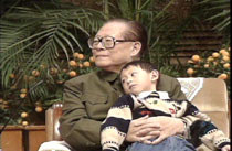 中國(guó)國(guó)家主席、中央軍委主席江澤民二十日在北京人民大會(huì)堂抱著王偉的兒子,會(huì)見(jiàn)被美機(jī)撞毀犧牲的飛行員王偉的家屬。