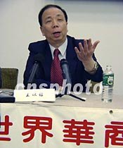 圖文:世界華商大會誠邀美國華商赴南京共襄盛舉 2001年05月23日 07:02 ![]() 美東時間21日下午,中華全國工商業(yè)聯(lián)合會副主席王以銘在紐約舉行的新聞發(fā)布會上說:第六屆世界華商大會將于九月十七日至十九日在中國江蘇南京召開。預(yù)計有約五千名海外華商、中國知名企業(yè)家和經(jīng)濟界人士與會。中新社記者 陳建 攝