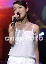 “同一首歌──走進澳門”演唱會十二日晚在澳門文化中心舉行,來自中國內地、香港、臺灣、澳門的眾多新老歌星同臺演出,吸引眾多觀眾。圖為來自內地的青春玉女歌星楊鈺瑩在演唱會上演唱。中新社傳真 宗金柱 攝