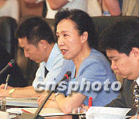 ![]() 中國代表團(tuán)團(tuán)長郭莉七月四日在北京外經(jīng)貿(mào)部就中日貿(mào)易爭端與日本代表團(tuán)進(jìn)行第二天的會談。中新社記者 鄒憲 攝
