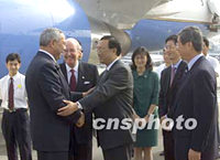![]() 美國國務(wù)卿鮑威爾二十八日八時十五分抵達(dá)北京國際機場,開始對中國的訪問。中新社記者 滿會喬 攝 ![]() 美國國務(wù)卿鮑威爾二十八日上午八時十五分抵達(dá)北京國際機場,開始對中國的訪問。中國駐美大使楊潔篪和美國駐華大使雷德等前往機場迎接。中新社記者 滿會喬 攝