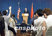 圖文:鮑威爾召開(kāi)記者招待會(huì)介紹此次訪華情況 2001年07月28日 20:06 ![]() 正在北京訪問(wèn)的美國(guó)國(guó)務(wù)卿鮑威爾二十八日傍晚在他下榻的北京國(guó)際俱樂(lè)部飯店回答記者提問(wèn)。中新社記者 毛建軍 攝 ![]() 二十八日傍晚在北京舉行的美國(guó)國(guó)務(wù)卿鮑威爾訪華記者招待會(huì)吸引了眾多中外媒體代表到場(chǎng)采訪。中新社記者 毛建軍 攝
