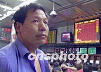 圖文:滬深股市遭遇恐慌拋售 股指大跌5%以上 2001年07月30日 15:50 ![]() 中國深滬股市周一的大幅下跌使北京證券市場的股民頗為吃驚。當(dāng)日深證成份指數(shù)以跌223.995點(-5.16%)報收,上證指數(shù)以跌108.91點(-5.27%)報收。七月以來,中國股民對國有股減持價格過高表示了一定的擔(dān)憂。中新社記者 鄒憲 攝