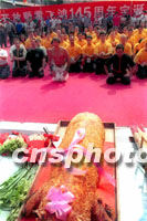 中新社佛山八月二十七日電(記者辛述之)今天是中國(guó)武林奇人黃飛鴻一百四十五周年誕辰,來自美國(guó)東、西部海外黃飛鴻門人尋根團(tuán)一行近百人,上午來到廣東佛山黃飛鴻紀(jì)念館,舉行拜師盛會(huì)并進(jìn)行武術(shù)表演。 晚清時(shí)期一代武術(shù)宗師黃飛鴻,一八五六年八月二十七日誕生于佛山。黃飛鴻武藝超凡,其富有傳奇色彩的故事,曾被拍成百余部電影在海外廣為流傳,其英名不但在國(guó)人心里扎根,而且還受到許多外國(guó)人的仰慕。 黃飛鴻門下弟子眾多,遍布粵港澳、東南亞乃至美加、歐洲等地。在人們心中,他已成為一個(gè)行俠仗義、扶危濟(jì)困,具有中華傳統(tǒng)美德的藝術(shù)形象而家喻戶曉。 今天,適逢座落于佛山祖廟的黃飛鴻紀(jì)念館全面開放,粵港澳武術(shù)界有關(guān)人員結(jié)伴前來,參加紀(jì)念盛會(huì)。上午九時(shí),參加過國(guó)慶五十周年慶典的二十頭醒獅起舞迎賓,黃飛鴻的傳人、著名武術(shù)家趙志凌、余志偉等為黃飛鴻紀(jì)念館醒獅點(diǎn)睛,并帶領(lǐng)來自美國(guó)東、西部的近百名黃飛鴻門人,按照傳統(tǒng)武林習(xí)俗拜祭祖師黃飛鴻。 隨后,進(jìn)行了大型群鼓表演、舞龍表演和舞獅表演。余志偉、趙志凌及其洋弟子相繼表演了精彩的黃飛鴻拳術(shù),其不凡的身手和高超的武藝,博得觀眾高聲喝彩和陣陣掌聲。 據(jù)了解,黃飛鴻紀(jì)念館今后將每年舉辦世界黃飛鴻門人大聯(lián)誼,還將舉辦國(guó)際洪拳大賽,黃飛鴻、霍元甲南北大俠國(guó)際武術(shù)邀請(qǐng)賽等活動(dòng)。(完) |