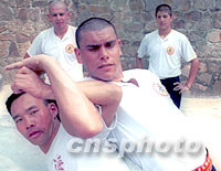 ![]() 來自墨西哥的七名學(xué)員,八月開始在廣東南海黃飛鴻武術(shù)館進(jìn)行為期兩個(gè)月的中國(guó)武術(shù)訓(xùn)練。近年來,該武館已教授了多批海外弟子。圖為洋徒弟正在向師傅學(xué)習(xí)擒拿術(shù)。中新社圖 梁永強(qiáng) 攝