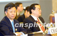 圖文:APEC財(cái)長齊聚蘇州 共論天下經(jīng)濟(jì)形勢 2001年09月08日 18:01 ![]() 第八屆APEC財(cái)政及央行副手會六日上午在中國蘇州市舉行。來自APEC二十一個(gè)經(jīng)濟(jì)體和三個(gè)國際經(jīng)濟(jì)組織的代表就會議各項(xiàng)議程進(jìn)行了討論。中新社記者 李剛 攝 ![]() 第八屆APEC財(cái)政及央行副手會六日在江蘇省蘇州市舉行,中國財(cái)政部副部長、本屆會議主席金立群主持會議。中新社記者 李剛 攝