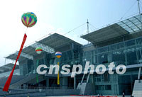 南京國際會議中心作為第六屆世界華商年會的主會場,已為九月中旬開幕做好準備。中新社記者 賈國榮 攝