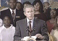 圖文:布什發(fā)表聲明說(shuō)撞擊事件是“國(guó)家的悲劇” 2001年09月11日 22:03 ![]() 布什就撞擊事件發(fā)表聲明 中新網(wǎng)北京9月11日消息:美國(guó)總統(tǒng)布什今天稱(chēng)兩架飛機(jī)在紐約世界貿(mào)易中心撞毀的事件“顯然是對(duì)我們國(guó)家的恐怖主義攻擊”。 布什在電視上發(fā)表聲明說(shuō):“今天,我們經(jīng)歷了全國(guó)性的悲劇。兩架飛機(jī)撞上了世界貿(mào)易中心,這顯然是一次對(duì)我們國(guó)家的恐怖主義襲擊。 布什在聲明中說(shuō):“我已經(jīng)命令調(diào)用聯(lián)邦政府的一切資源幫助遇難者及其家人!辈际部偨y(tǒng)還命令官員“追蹤和抓捕”肇事者。 |